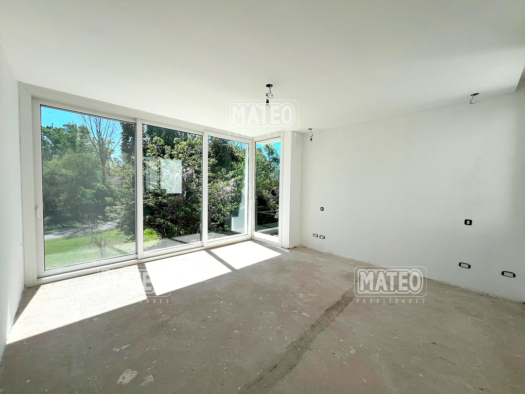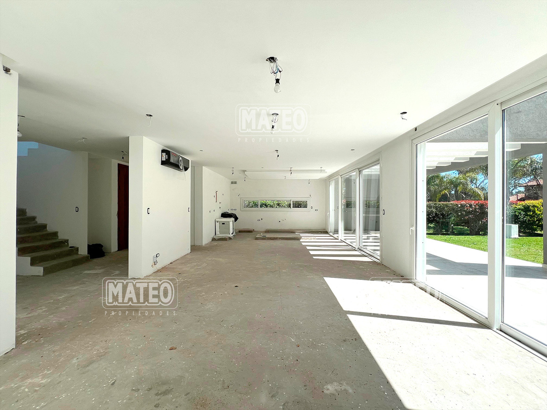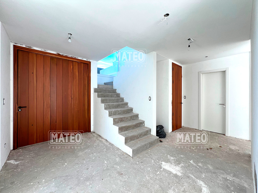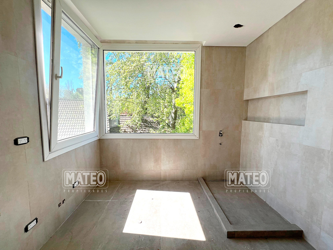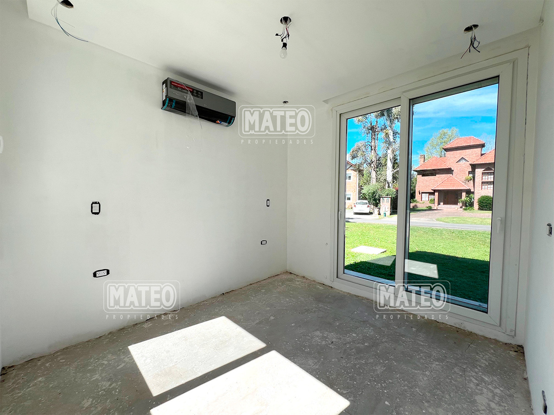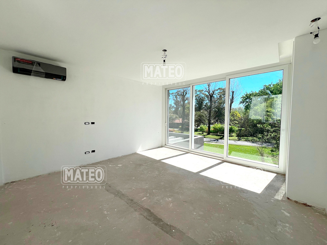 La propiedad se vende con algunos de sus revestimientos sin colocar. PLANTA BAJA: Hall de recepción. Living comedor con amplios ventanales hacia el jardín. Cocina integrada, diseñada para amplia isla central. Estudio. Baño completo. Cómodo lavadero interno. Gran galería con parrilla. Baño externo. Garaje cubierto para dos vehículos, a lo que se adiciona espacio descubierto para varios vehículos. Cuarto de guardado. PLANTA ALTA: Dormitorio principal con grandes ventanales y vistas abiertas, cuenta con espacio de estar o estudio, amplio espacio de vestidor, luminoso baño suite preparado para hidromasajes, box de ducha, y doble bacha. Segundo dormitorio en suite con dos sectores de vestidor. Tercer dormitorio en suite con vestidor. CARACTERISTICAS GENERALES: La propiedad cuenta con aberturas PVC doble vidrio, puertas internas Oblak, destacadas puertas de madera al frente, splits frio-calor inverter espejados en todos sus ambientes colocados. Caldera Peisa instalada, y dos termotaques (planta baja y planta alta). Revestimiento exterior de tarquini. Pisos exteriores colocados. La propiedad se vende sin la colocación de sus pisos interiores, amueblamiento de cocina, sanitarios y vanitory de sus baños, amueblamiento de vestidores, ni la colocación de los radiadores. Mateo Propiedades. Mat. 36 Dpto. M-Gr.38