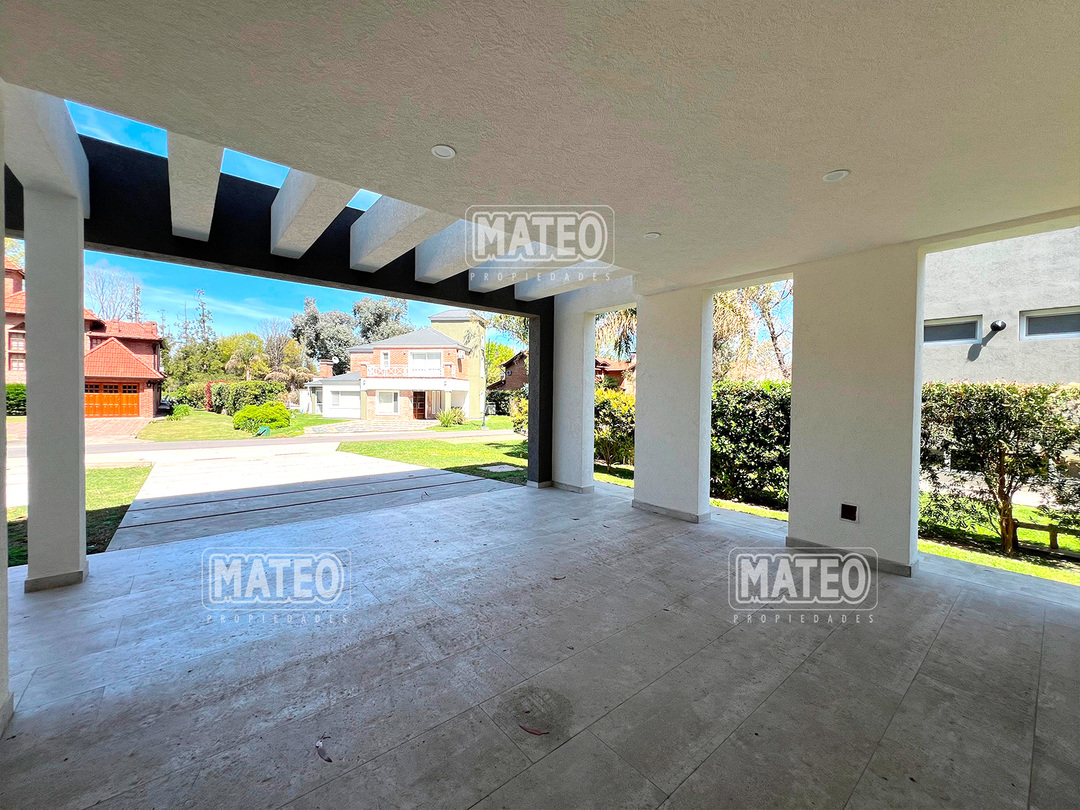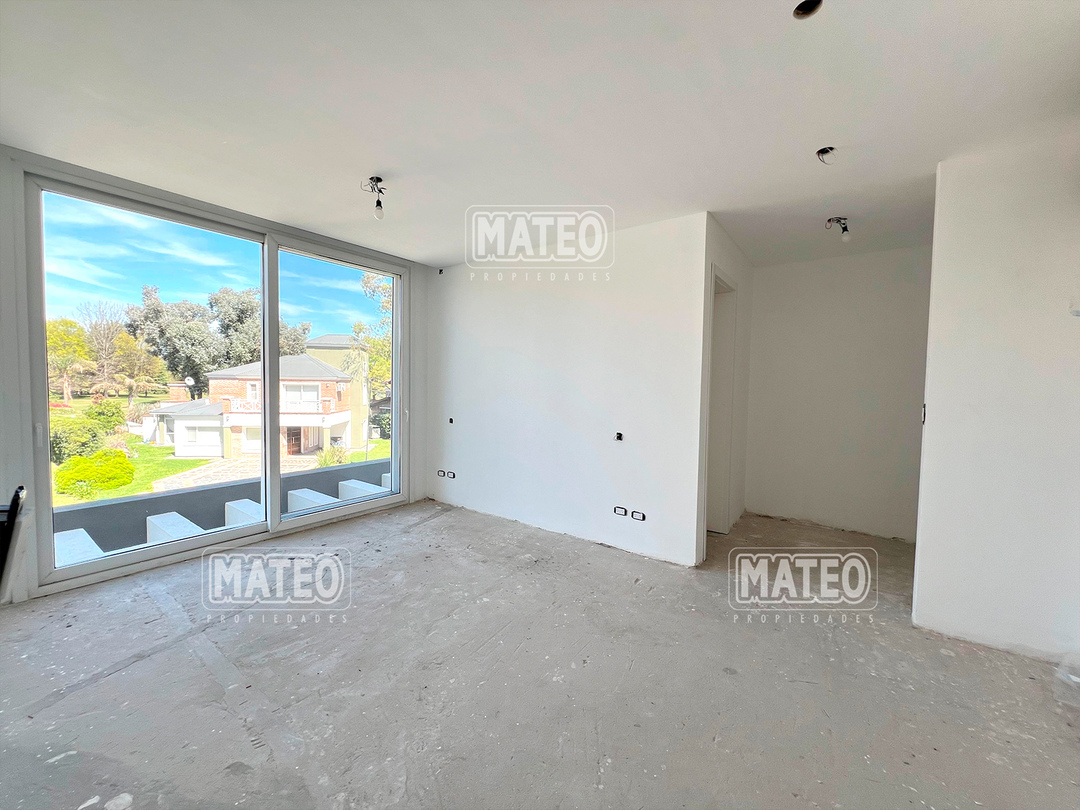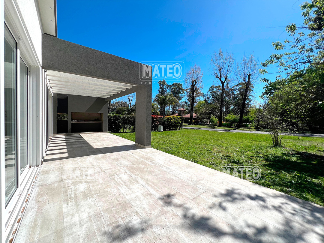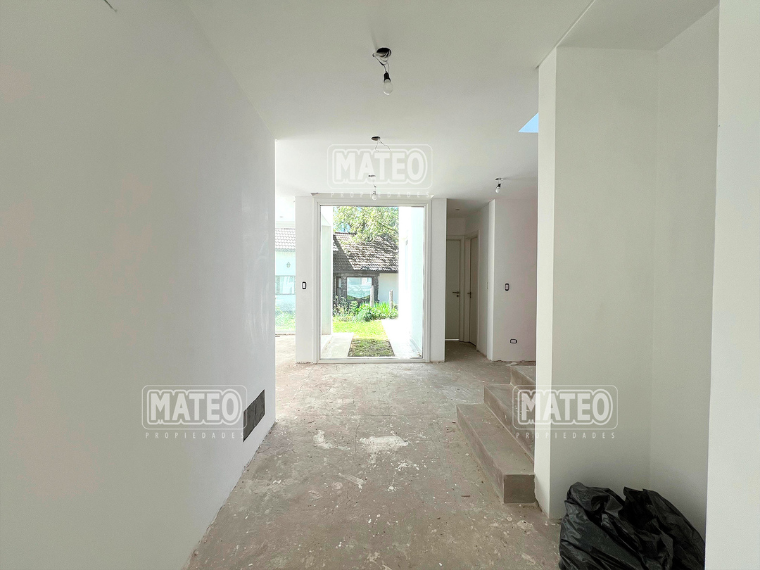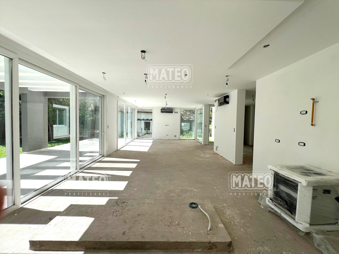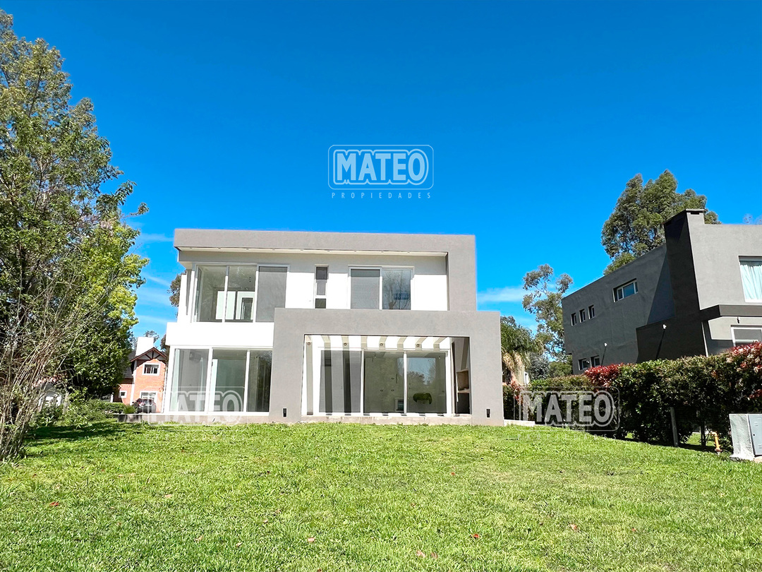 La propiedad se vende con algunos de sus revestimientos sin colocar. PLANTA BAJA: Hall de recepción. Living comedor con amplios ventanales hacia el jardín. Cocina integrada, diseñada para amplia isla central. Estudio. Baño completo. Cómodo lavadero interno. Gran galería con parrilla. Baño externo. Garaje cubierto para dos vehículos, a lo que se adiciona espacio descubierto para varios vehículos. Cuarto de guardado. PLANTA ALTA: Dormitorio principal con grandes ventanales y vistas abiertas, cuenta con espacio de estar o estudio, amplio espacio de vestidor, luminoso baño suite preparado para hidromasajes, box de ducha, y doble bacha. Segundo dormitorio en suite con dos sectores de vestidor. Tercer dormitorio en suite con vestidor. CARACTERISTICAS GENERALES: La propiedad cuenta con aberturas PVC doble vidrio, puertas internas Oblak, destacadas puertas de madera al frente, splits frio-calor inverter espejados en todos sus ambientes colocados. Caldera Peisa instalada, y dos termotaques (planta baja y planta alta). Revestimiento exterior de tarquini. Pisos exteriores colocados. La propiedad se vende sin la colocación de sus pisos interiores, amueblamiento de cocina, sanitarios y vanitory de sus baños, amueblamiento de vestidores, ni la colocación de los radiadores. Mateo Propiedades. Mat. 36 Dpto. M-Gr.38