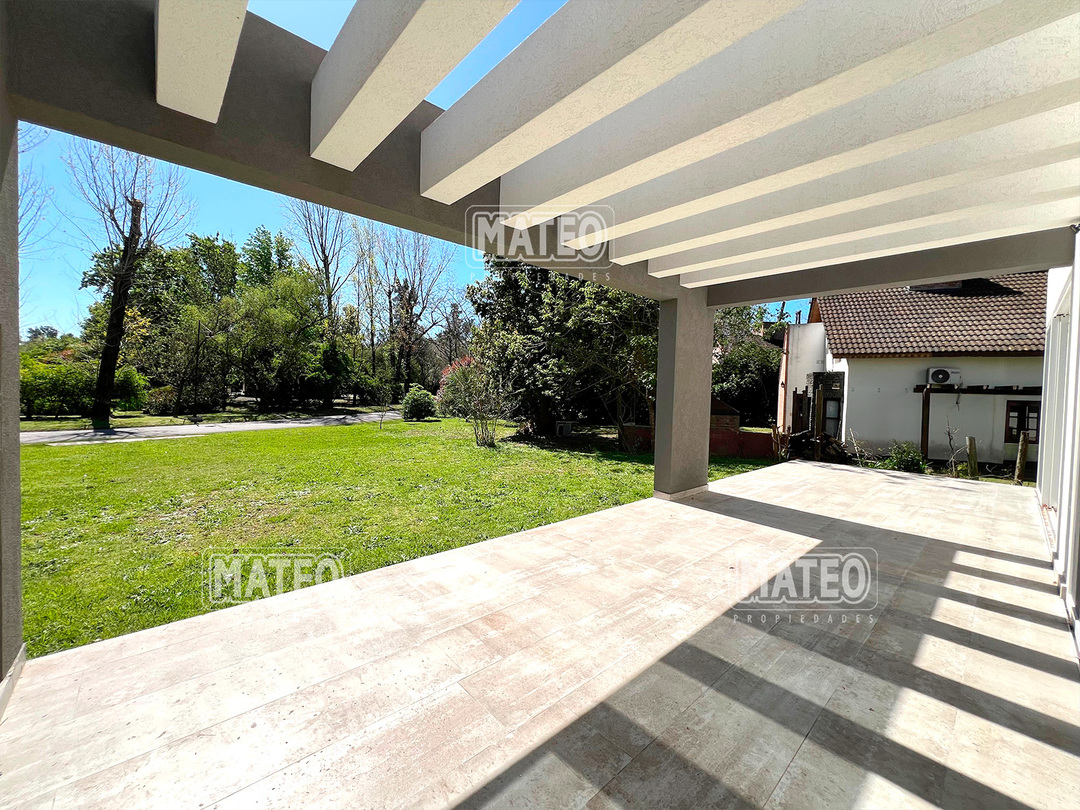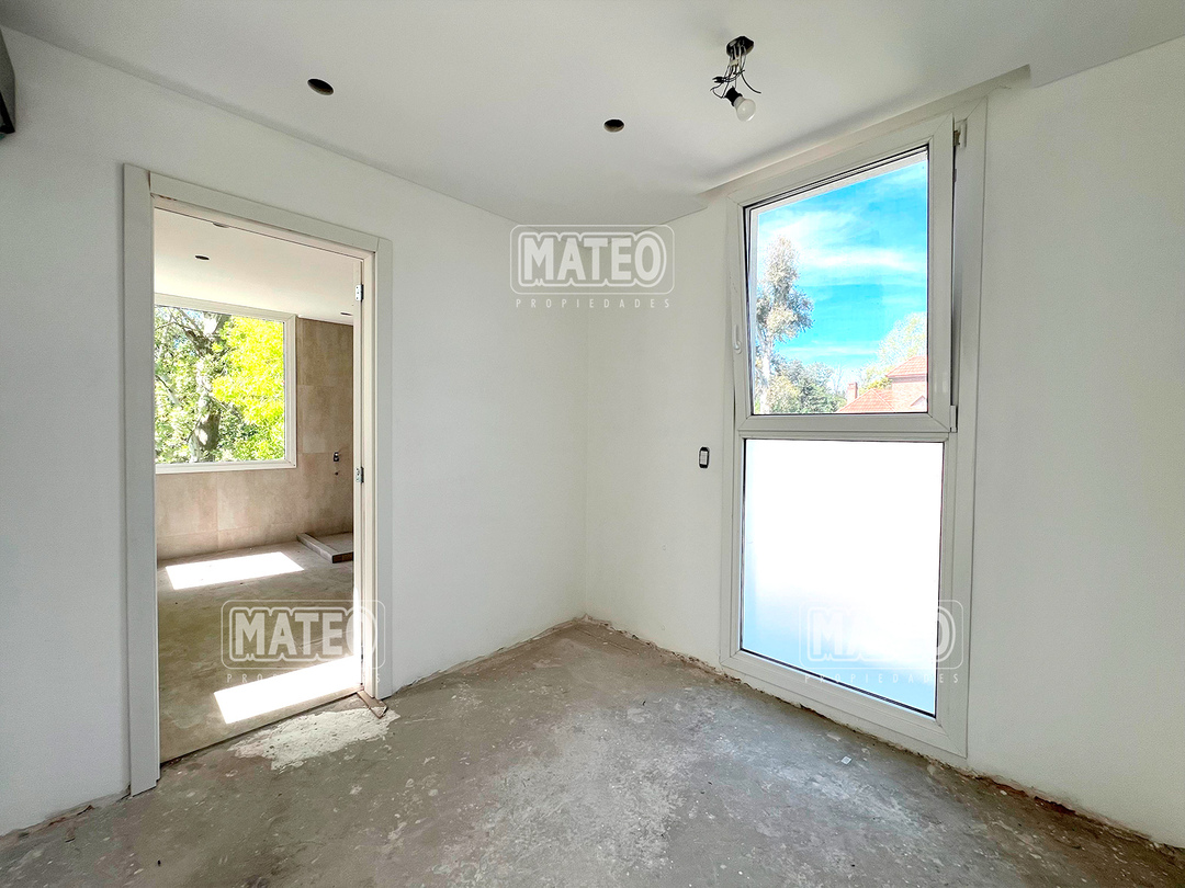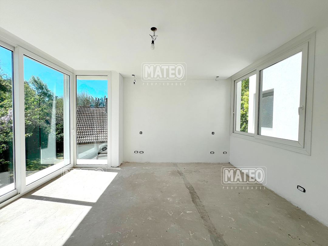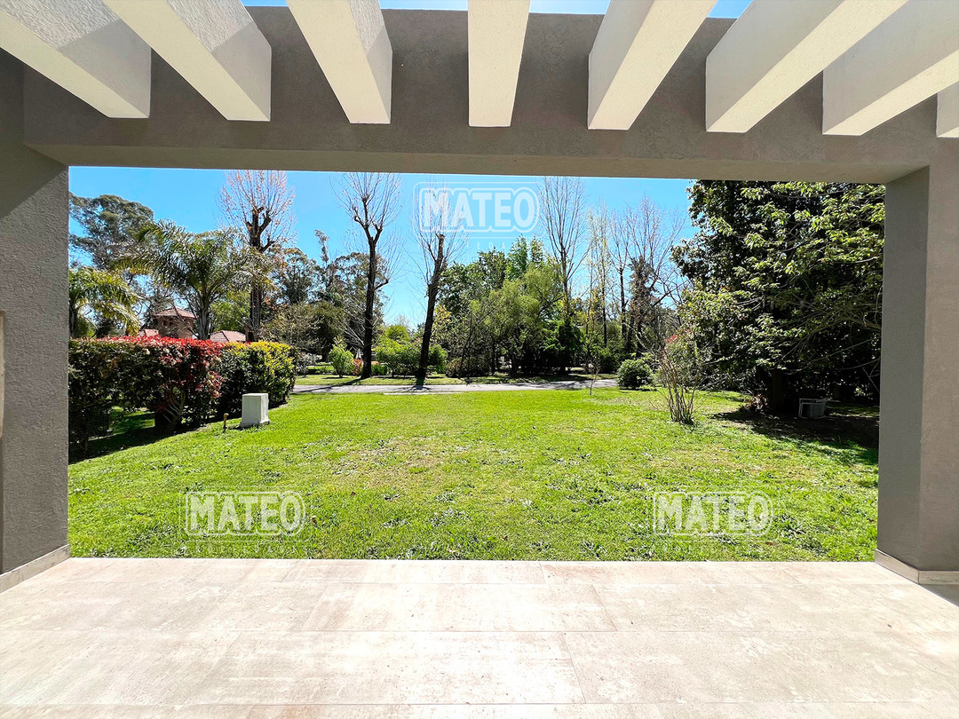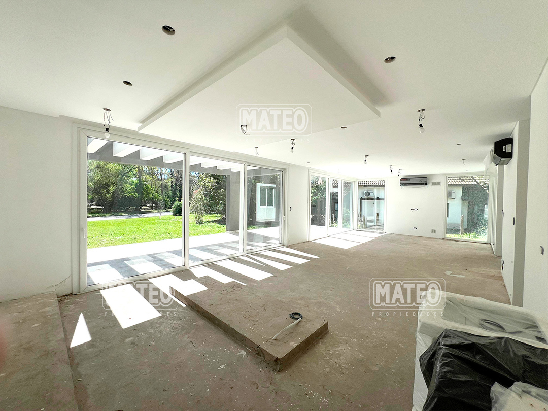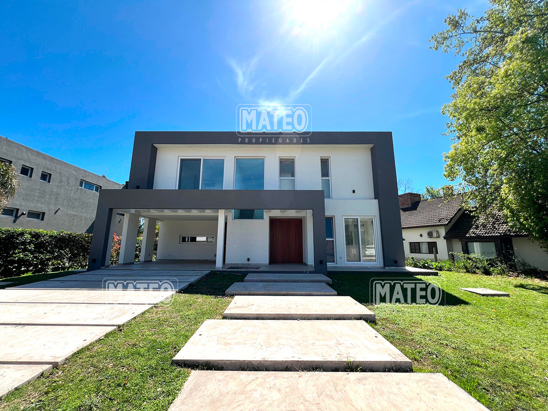 La propiedad se vende con algunos de sus revestimientos sin colocar. PLANTA BAJA: Hall de recepción. Living comedor con amplios ventanales hacia el jardín. Cocina integrada, diseñada para amplia isla central. Estudio. Baño completo. Cómodo lavadero interno. Gran galería con parrilla. Baño externo. Garaje cubierto para dos vehículos, a lo que se adiciona espacio descubierto para varios vehículos. Cuarto de guardado. PLANTA ALTA: Dormitorio principal con grandes ventanales y vistas abiertas, cuenta con espacio de estar o estudio, amplio espacio de vestidor, luminoso baño suite preparado para hidromasajes, box de ducha, y doble bacha. Segundo dormitorio en suite con dos sectores de vestidor. Tercer dormitorio en suite con vestidor. CARACTERISTICAS GENERALES: La propiedad cuenta con aberturas PVC doble vidrio, puertas internas Oblak, destacadas puertas de madera al frente, splits frio-calor inverter espejados en todos sus ambientes colocados. Caldera Peisa instalada, y dos termotaques (planta baja y planta alta). Revestimiento exterior de tarquini. Pisos exteriores colocados. La propiedad se vende sin la colocación de sus pisos interiores, amueblamiento de cocina, sanitarios y vanitory de sus baños, amueblamiento de vestidores, ni la colocación de los radiadores. Mateo Propiedades. Mat. 36 Dpto. M-Gr.38