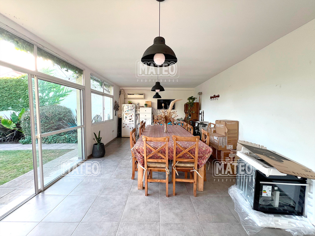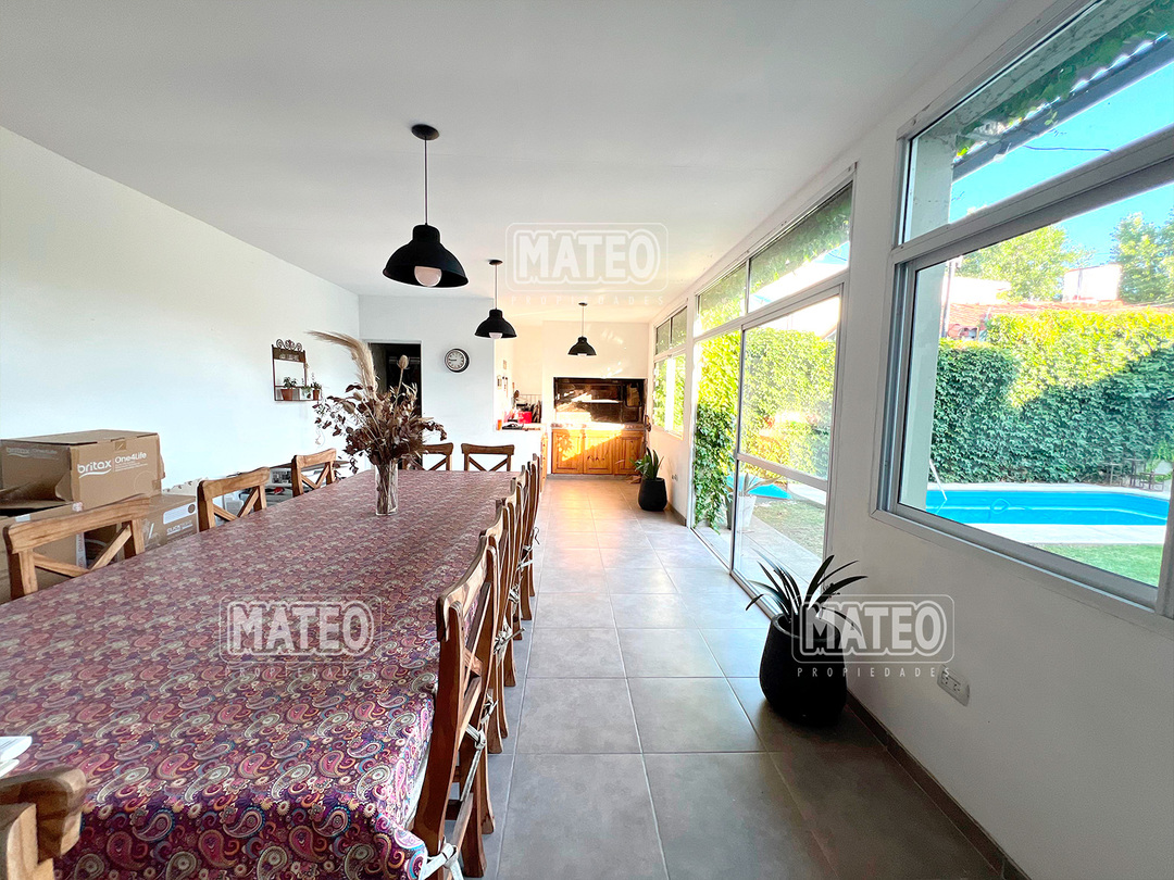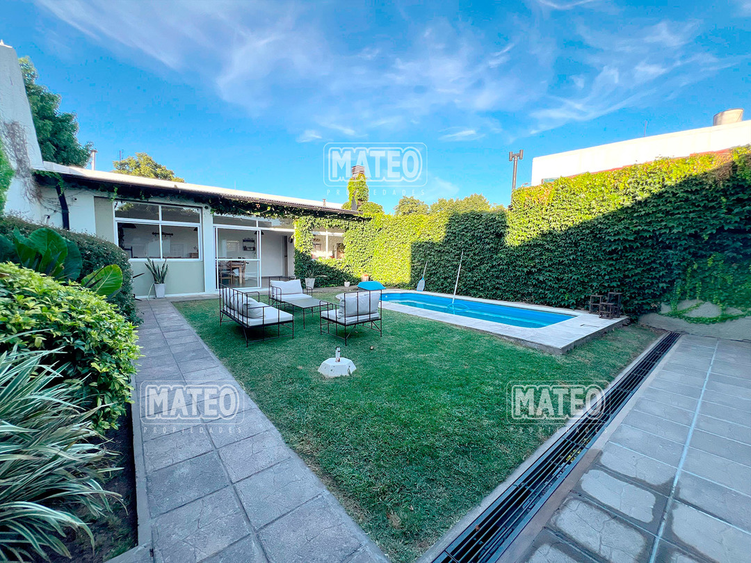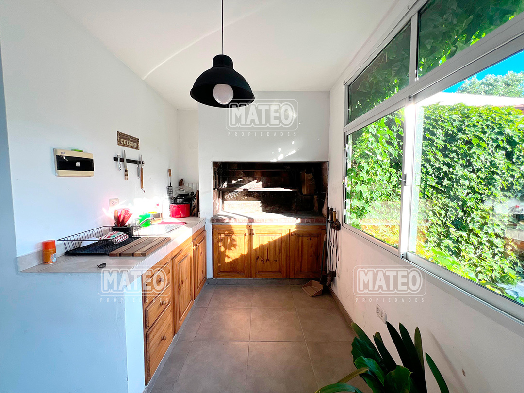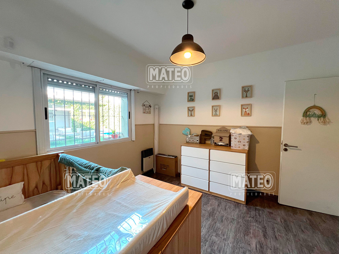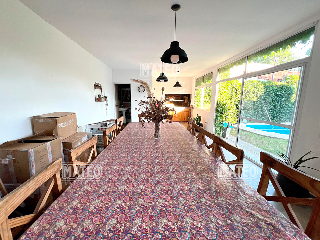 Paso del Rey, lado sur. Ocho cuadras de la estación. Todos los servicios. Propiedad construida en planta baja, con muy buen nivel constructivo, y excelente estado de mantenimiento. Patio delantero y hall recibidor. Living comedor. Cocina semi integrada, con moderno amueblamiento. Dos amplios dormitorios con placar. Baño completo. Hermoso jardín trasero. Quincho cerrado de amplias dimensiones, muy bien equipado y con baño completo. Piscina de fibra de vidrio, con su equipo completo de filtrado y bomba. Garaje cubierto para dos vehículos, portón vehicular automatizado. CARACTERISTICAS GENERALES: Calefacción por tiro balanceado y Splits frio-calor. Mat. 36 Dpto. M-Gr.