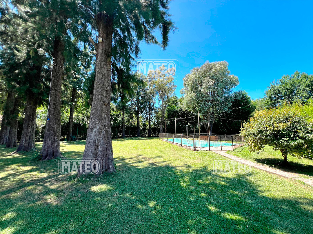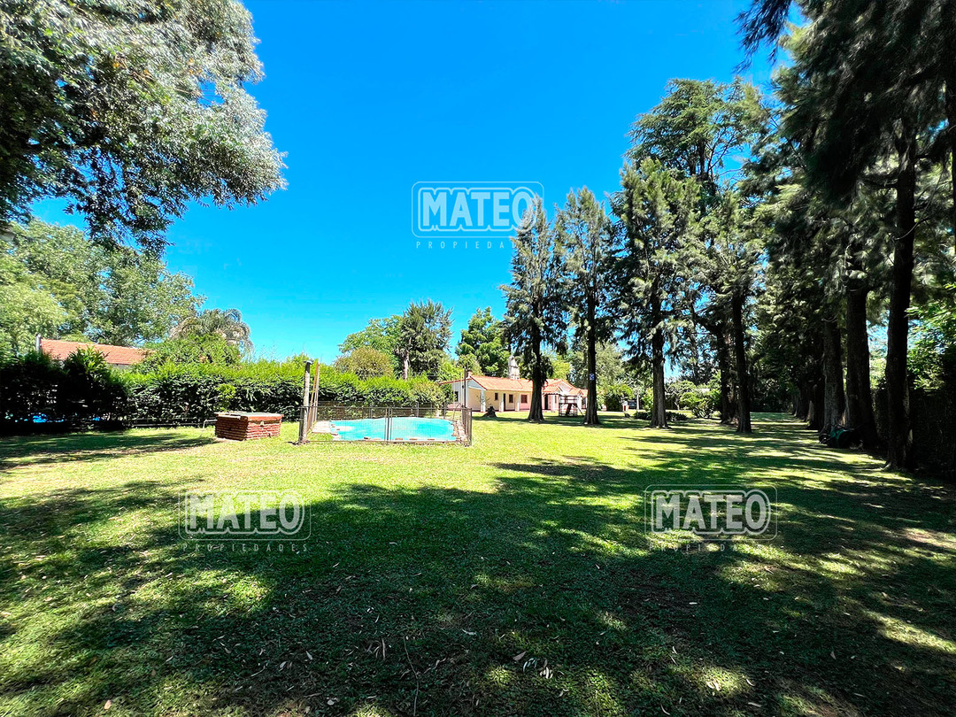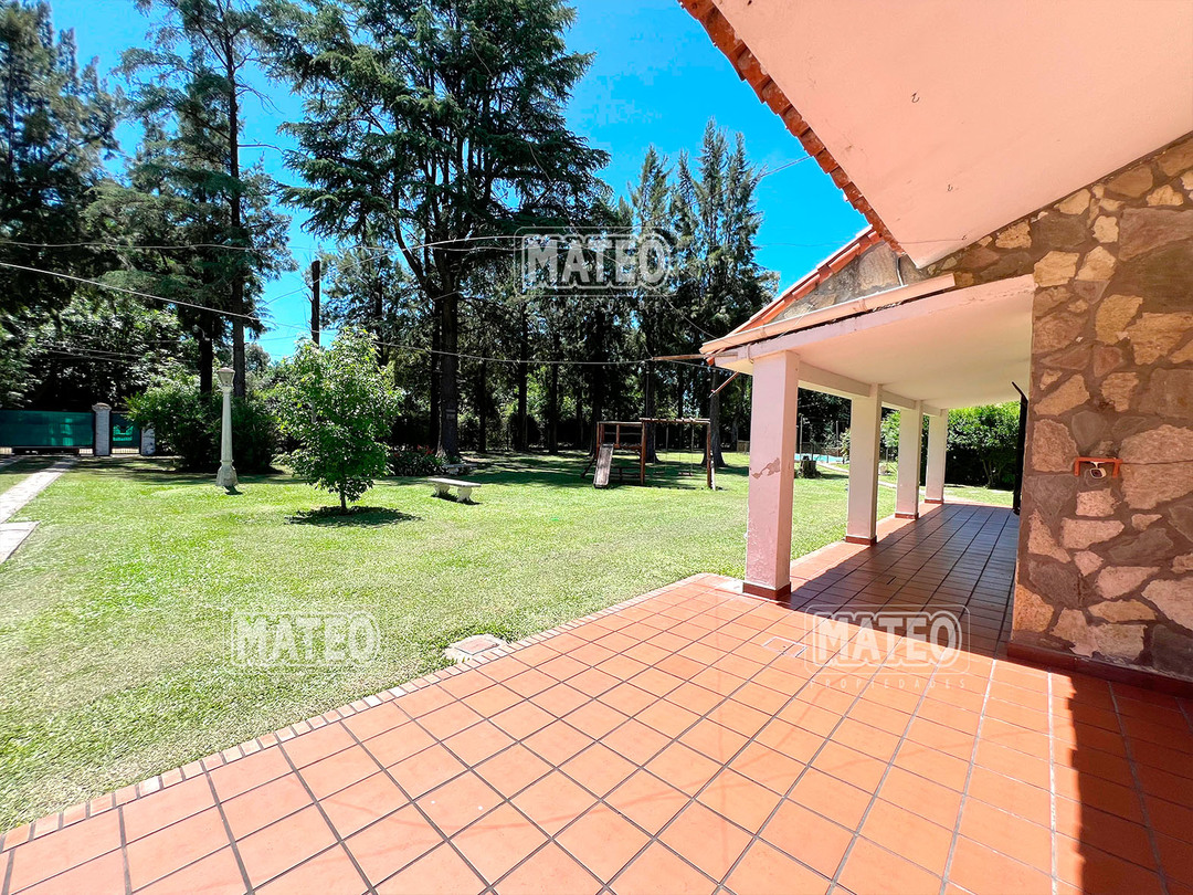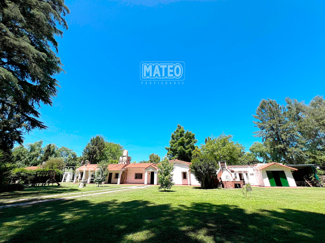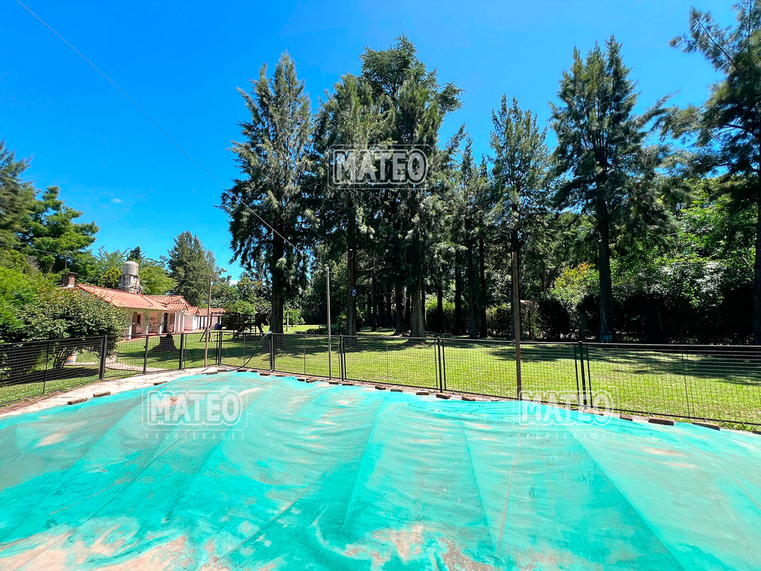 Quinta de 2.700 m2 de terreno. Cuenta con añosa arboleda, y cuidada parquizacion. Amplia galería que rodea la propiedad. Piscina de natación. Baño exterior. Propiedad construida íntegramente en planta baja. Living comedor con hogar a leña. Cocina comedor. Tres dormitorios (principal en suite, uno de ellos cuenta con hogar a leña). Segundo baño completo. 4to. dormitorio en suite ó dependencia de servicio, con acceso independiente. Amplio ambiente para uso de cuarto de herramientas, guardado de maquinas, o utilizable como otro ambiente de la propiedad, cuenta con sector de lavadero. Garaje cerrado. Galería lateral utilizable como segundo garaje. La propiedad cuenta con Splits frio-calor. Mat. 36 Dpto. M-Gr.