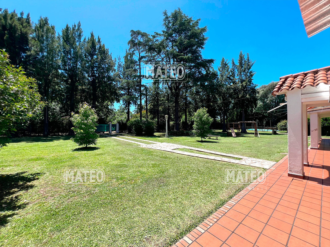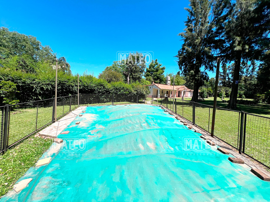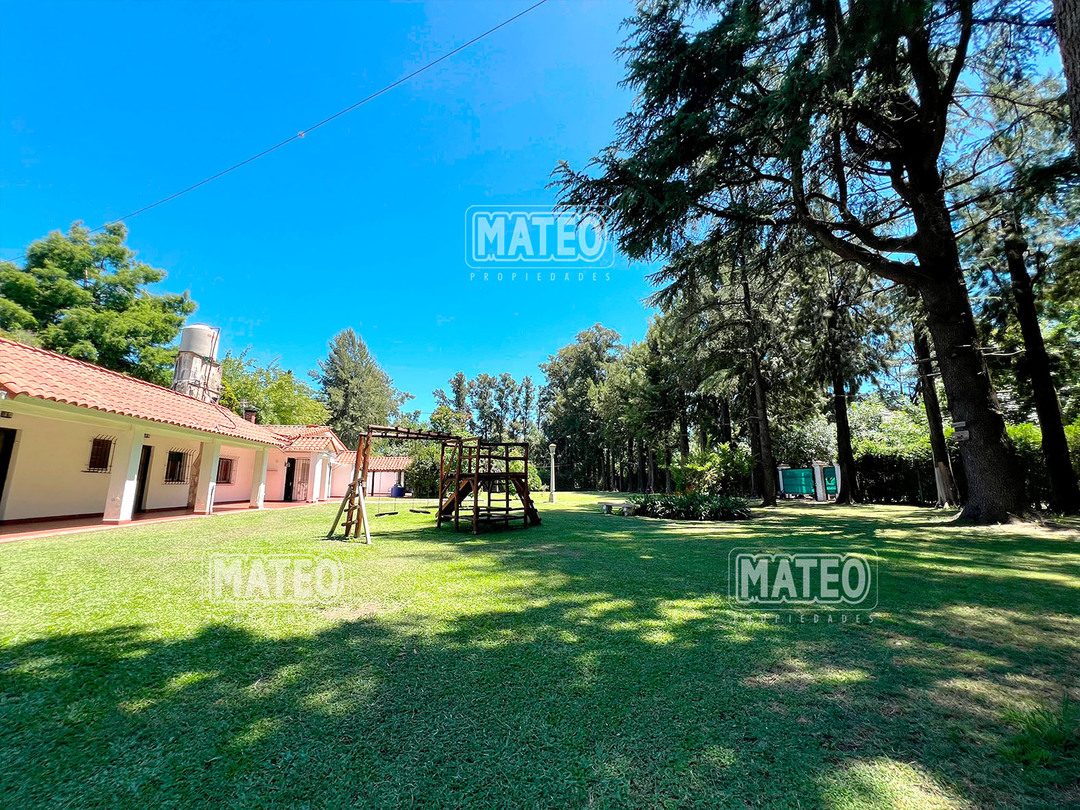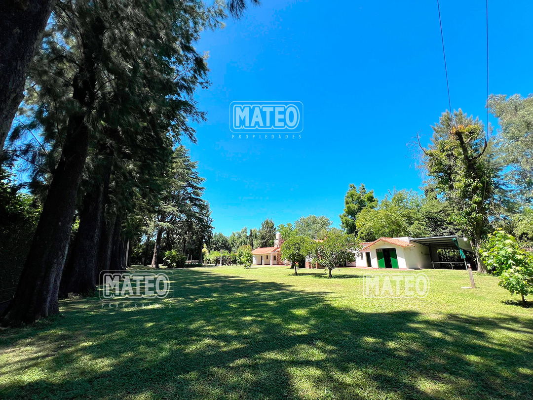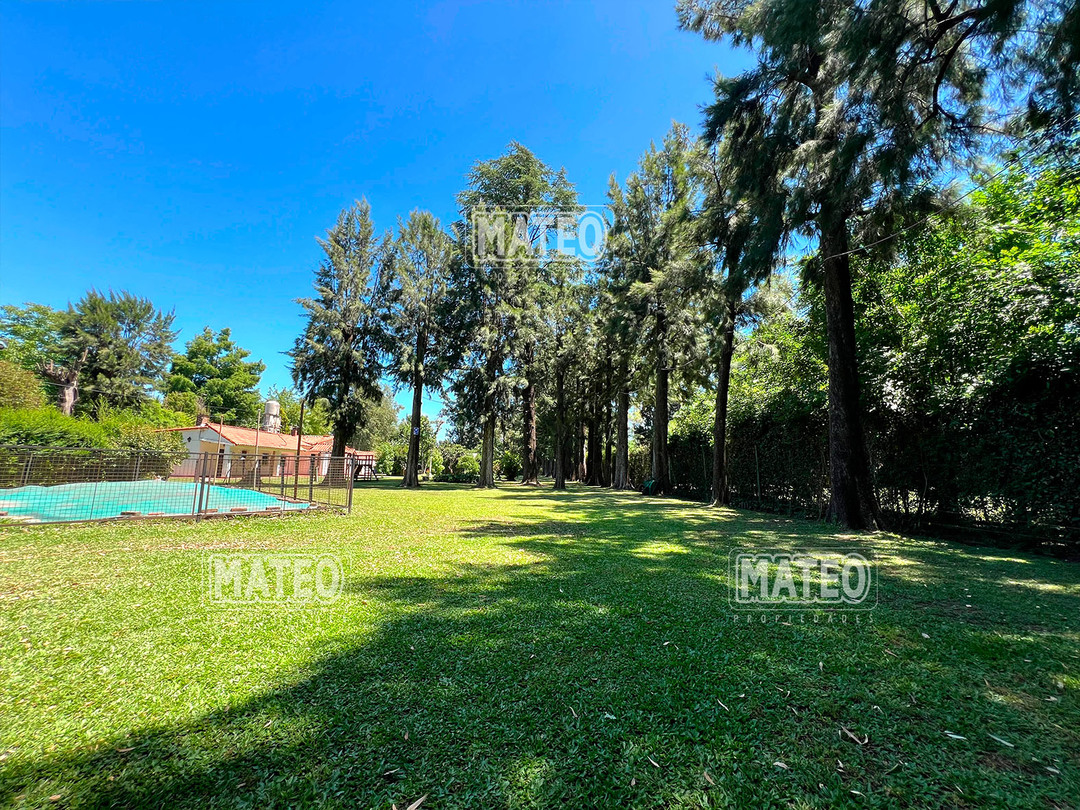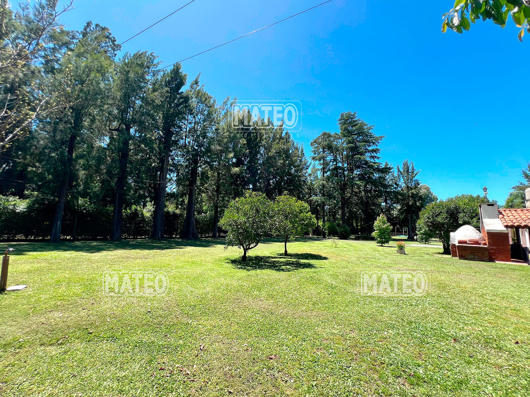 Quinta de 2.700 m2 de terreno. Cuenta con añosa arboleda, y cuidada parquizacion. Amplia galería que rodea la propiedad. Piscina de natación. Baño exterior. Propiedad construida íntegramente en planta baja. Living comedor con hogar a leña. Cocina comedor. Tres dormitorios (principal en suite, uno de ellos cuenta con hogar a leña). Segundo baño completo. 4to. dormitorio en suite ó dependencia de servicio, con acceso independiente. Amplio ambiente para uso de cuarto de herramientas, guardado de maquinas, o utilizable como otro ambiente de la propiedad, cuenta con sector de lavadero. Garaje cerrado. Galería lateral utilizable como segundo garaje. La propiedad cuenta con Splits frio-calor. Mat. 36 Dpto. M-Gr.
