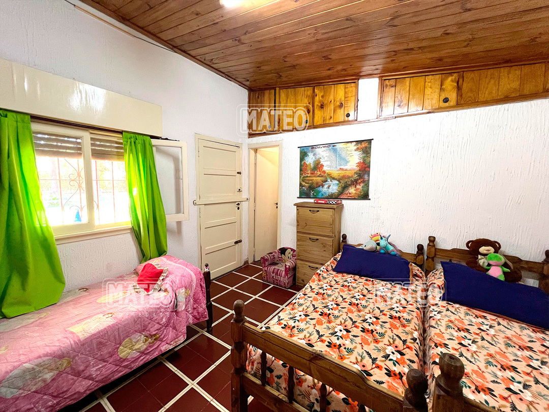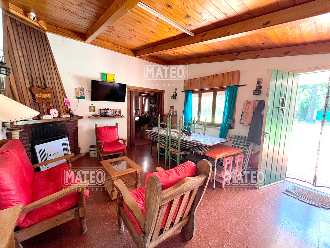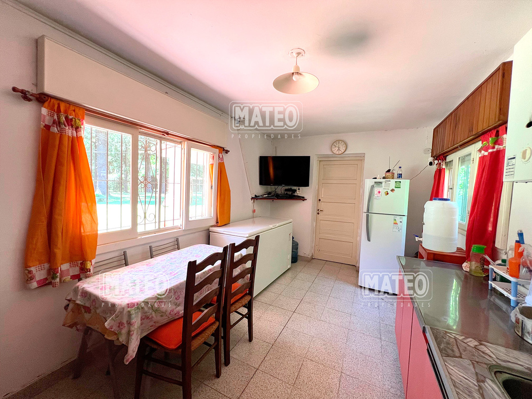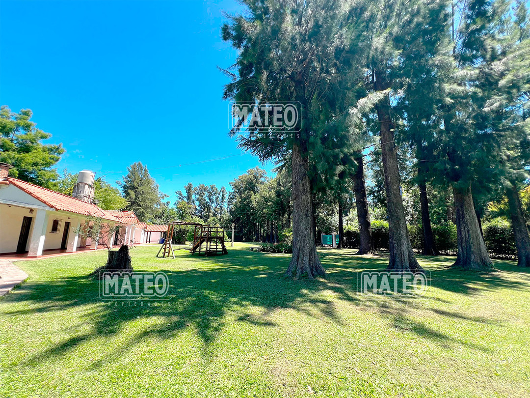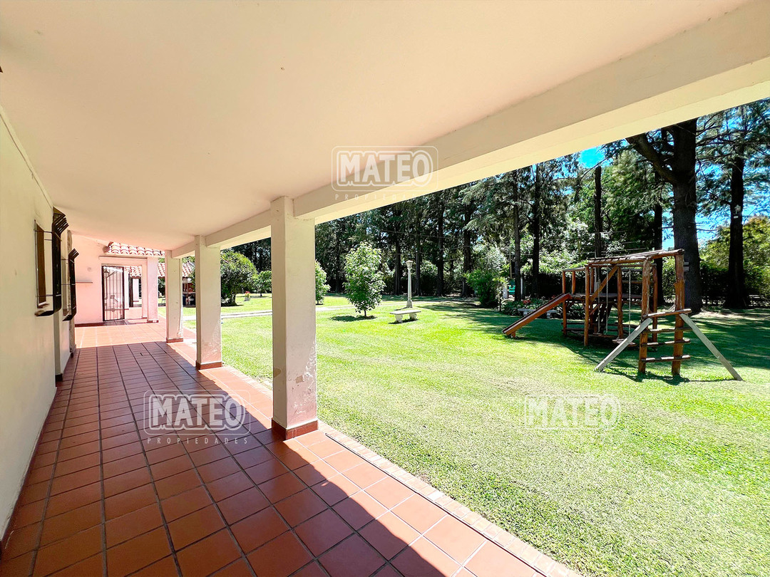 Quinta de 2.700 m2 de terreno. Cuenta con añosa arboleda, y cuidada parquizacion. Amplia galería que rodea la propiedad. Piscina de natación. Baño exterior. Propiedad construida íntegramente en planta baja. Living comedor con hogar a leña. Cocina comedor. Tres dormitorios (principal en suite, uno de ellos cuenta con hogar a leña). Segundo baño completo. 4to. dormitorio en suite ó dependencia de servicio, con acceso independiente. Amplio ambiente para uso de cuarto de herramientas, guardado de maquinas, o utilizable como otro ambiente de la propiedad, cuenta con sector de lavadero. Garaje cerrado. Galería lateral utilizable como segundo garaje. La propiedad cuenta con Splits frio-calor. Mat. 36 Dpto. M-Gr.