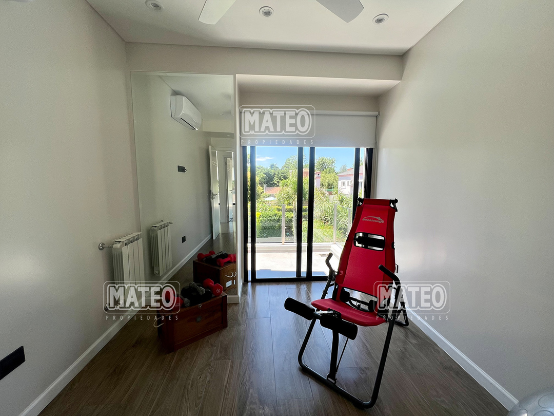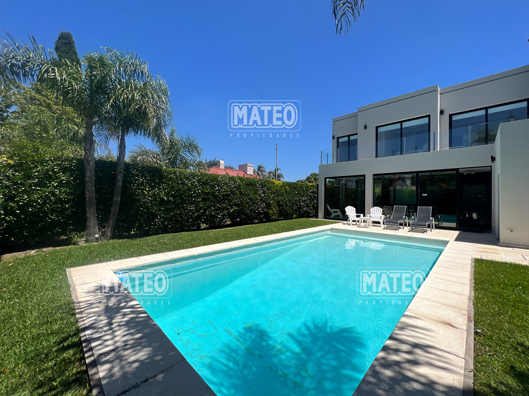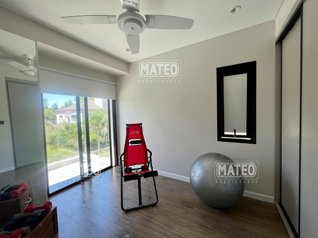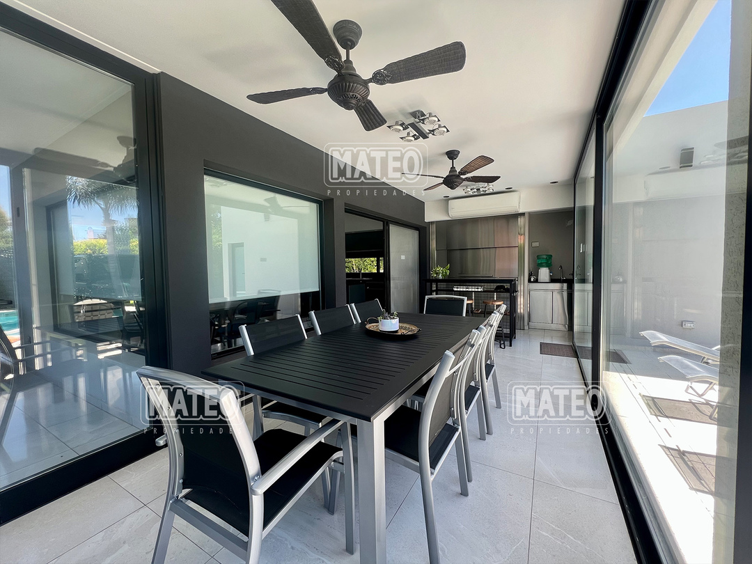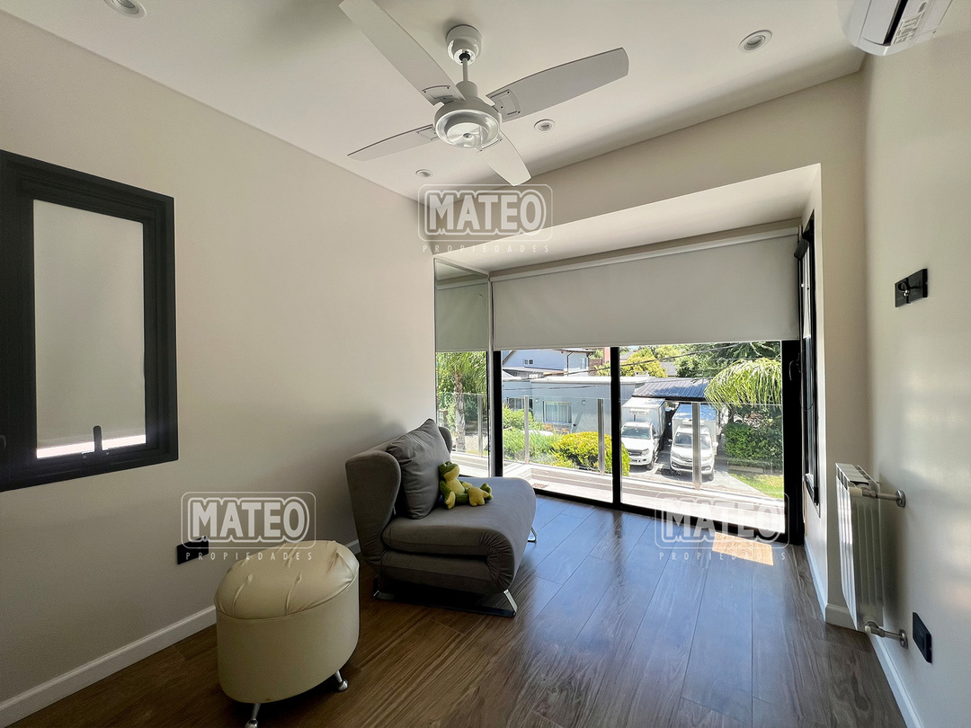 MODERNA PROPIEDAD CON EXCELENTE NIVEL DE TERMINACIONES En Planta baja cuenta con un luminoso living, toillete de recepción, moderna cocina con mobiliario jonsohn de excelente calidad, horno empotrado marca Ariston, anafe a gas, campana extractora de acero inoxidable, lavavajillas, isla central, luminoso comedor diario. A continuación cuenta con un práctico y super luminoso quincho cerrado con aberturas de vidrio DVH de pared a pared, parrilla con tapa y puertas de acero inoxidable. con sector a carbon y sector a gas. Ladero y baño para abastecer el exterior. Garage semi cubierto para 2 vehiculos. En Planta Alta cuenta con 4 Dormitorios todos con salida a balcon corrido (una master suite con vestidor, baño en suite revestido en porcelanato calacata. Los otros tres dormitorios cuentan con placards de piso a techo y comparten un baño completo. En el exterior piscina con climatizador y amplio solarium. Cesped de grama bahiana y parquización con palmeras. Riego. Terminaciones: Calefaccion por radiadores, todos los ambientes cuentan con aire acondicionado individual, revestimiento de pisos y baños marca Ilva. MObiliario de cocina Jonsohn, Aberturas doble vidrio en toda la casa. Barandas en terrazas de blindex. Revestimiento exterior Tarquini, pintura interior satinada. Todas las terminaciones de excelente calidad. La casa se entrega con todas las luces, ventiladores, aires, cortinas. Excelente valor en función de su calidad y nivel de terminaciones. No deje de coordinar su visita. - Mat 36 Moreno - Gral Rodriguez.