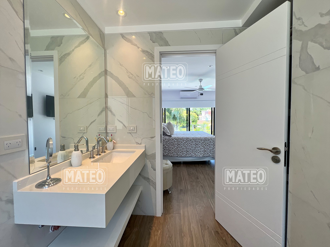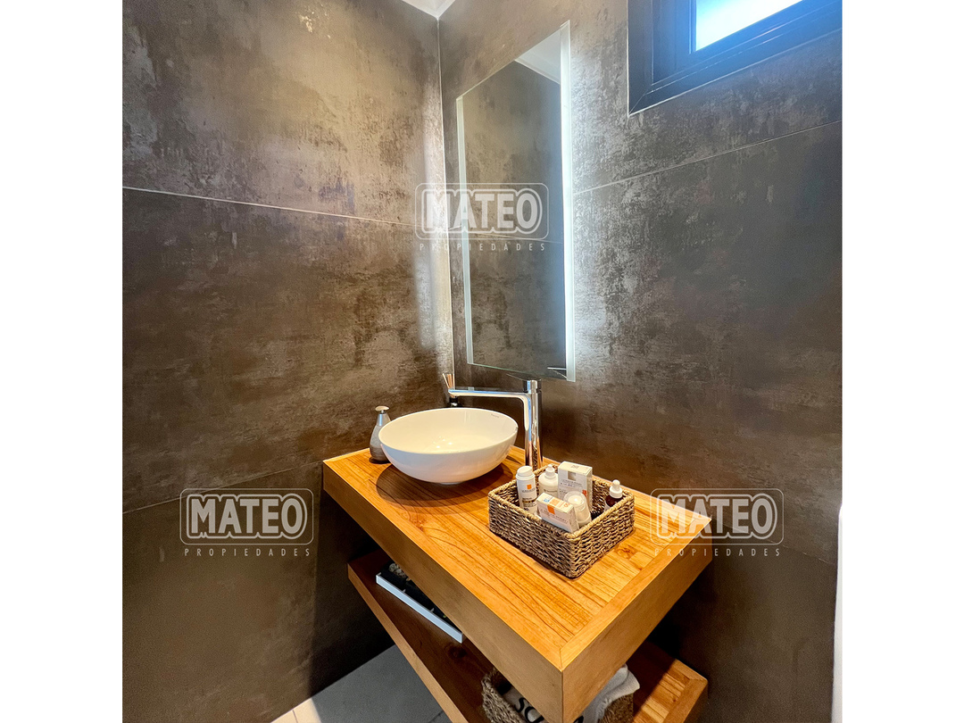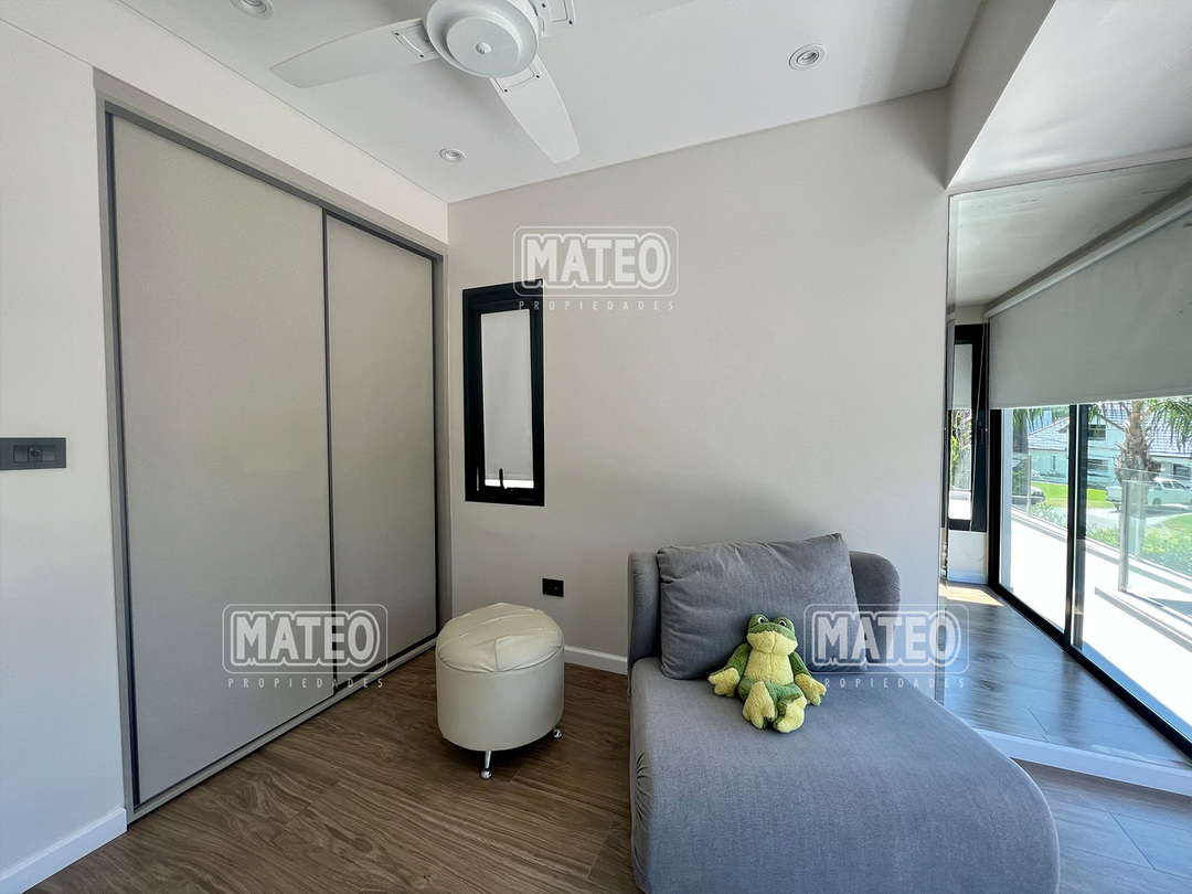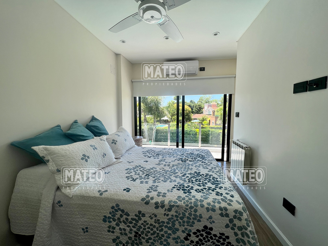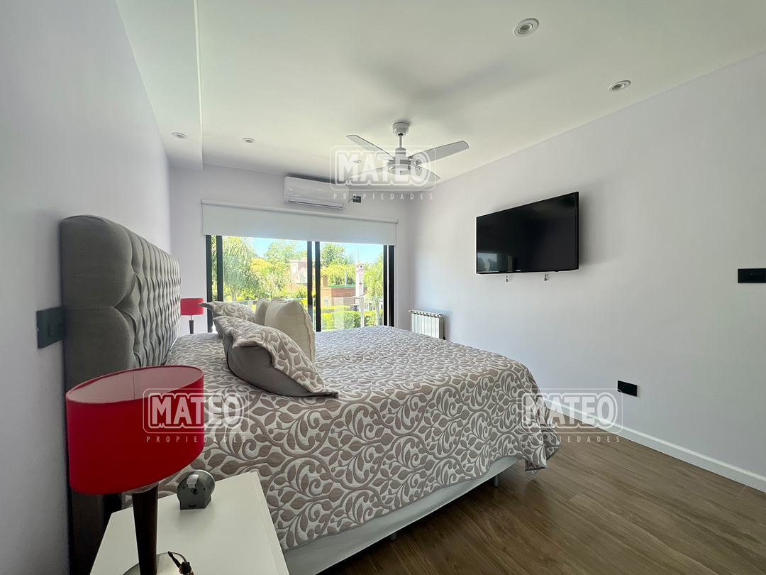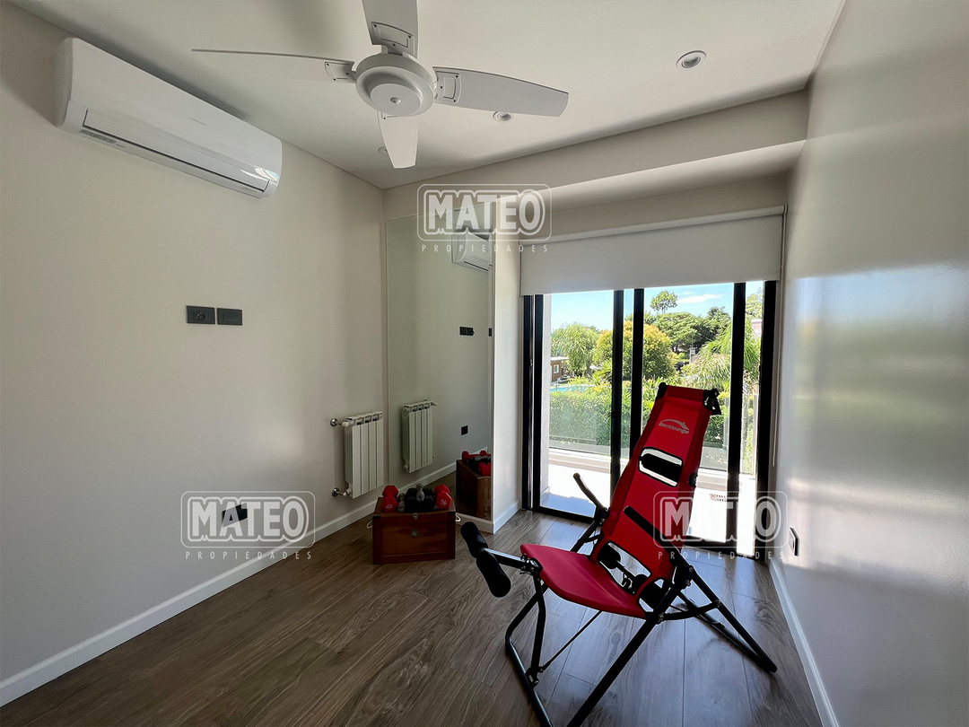 MODERNA PROPIEDAD CON EXCELENTE NIVEL DE TERMINACIONES En Planta baja cuenta con un luminoso living, toillete de recepción, moderna cocina con mobiliario jonsohn de excelente calidad, horno empotrado marca Ariston, anafe a gas, campana extractora de acero inoxidable, lavavajillas, isla central, luminoso comedor diario. A continuación cuenta con un práctico y super luminoso quincho cerrado con aberturas de vidrio DVH de pared a pared, parrilla con tapa y puertas de acero inoxidable. con sector a carbon y sector a gas. Ladero y baño para abastecer el exterior. Garage semi cubierto para 2 vehiculos. En Planta Alta cuenta con 4 Dormitorios todos con salida a balcon corrido (una master suite con vestidor, baño en suite revestido en porcelanato calacata. Los otros tres dormitorios cuentan con placards de piso a techo y comparten un baño completo. En el exterior piscina con climatizador y amplio solarium. Cesped de grama bahiana y parquización con palmeras. Riego. Terminaciones: Calefaccion por radiadores, todos los ambientes cuentan con aire acondicionado individual, revestimiento de pisos y baños marca Ilva. MObiliario de cocina Jonsohn, Aberturas doble vidrio en toda la casa. Barandas en terrazas de blindex. Revestimiento exterior Tarquini, pintura interior satinada. Todas las terminaciones de excelente calidad. La casa se entrega con todas las luces, ventiladores, aires, cortinas. Excelente valor en función de su calidad y nivel de terminaciones. No deje de coordinar su visita. - Mat 36 Moreno - Gral Rodriguez.