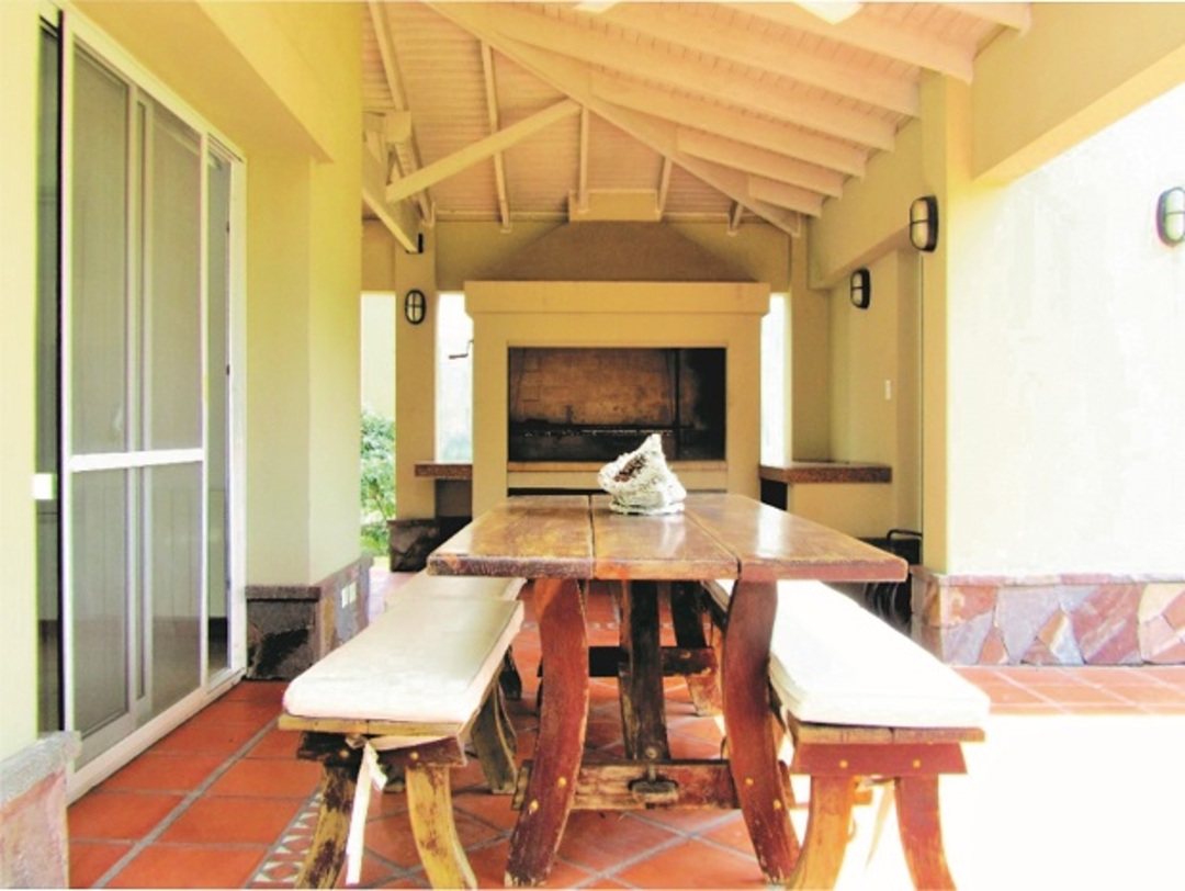 PLANTA BAJA: hall recibidor. Amplio living comedor con hogar a leña. Cocina comedor diario. Toilette de recepción. Dependencia de servicio con baño completo y lavadero. Garaje cubierto. Amplia galería con parrilla. Piscina climatizada con revestimiento de venecitas. PRIMER PISO: tres amplios dormitorios (principal en suite con vestidor). Segundo baño compartimentado. CARACTERISTICAS GENERALES: Buen nivel constructivo y de terminaciones. Calefacción por radiadores. Amplios ambientes, y muy luminosos. Aire acondicionado en todos los dormitorios. Mateo Propiedades. Mat. 203 Dpto. M-Gr.
