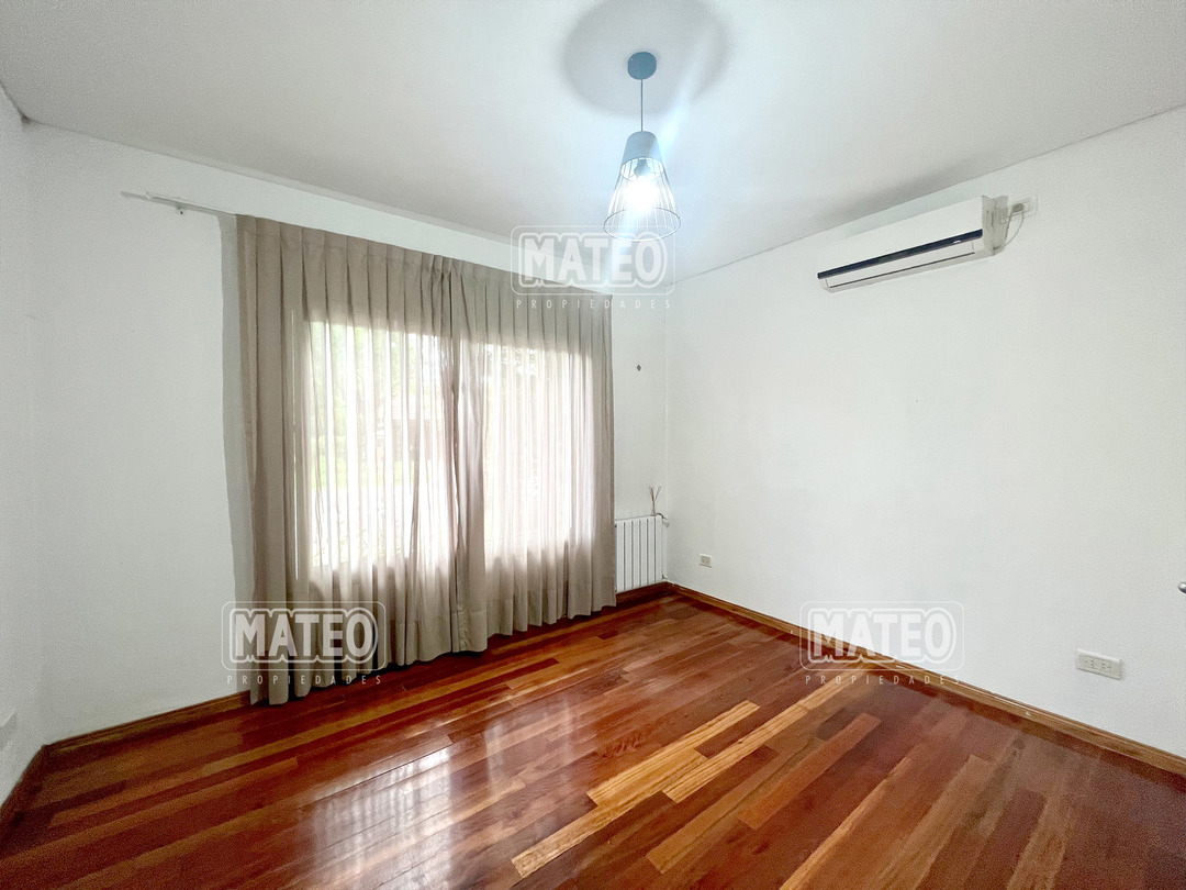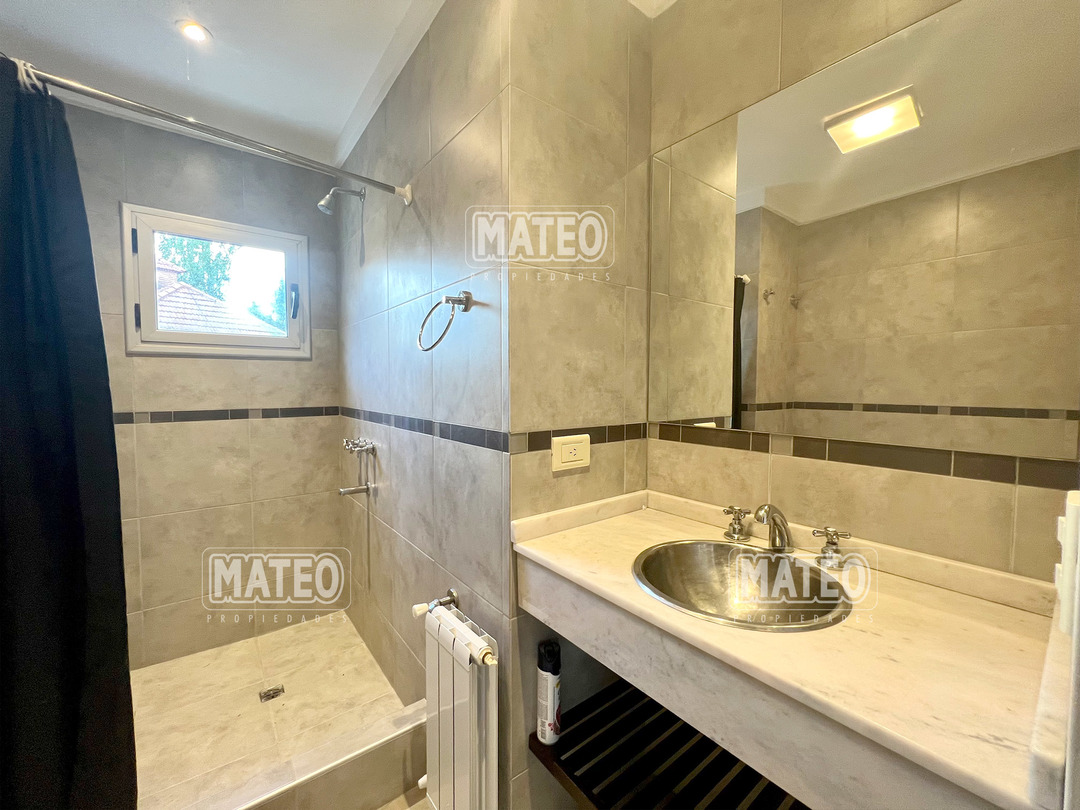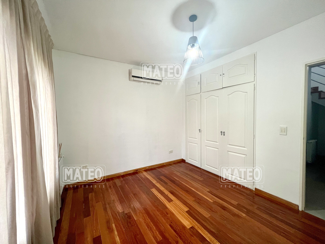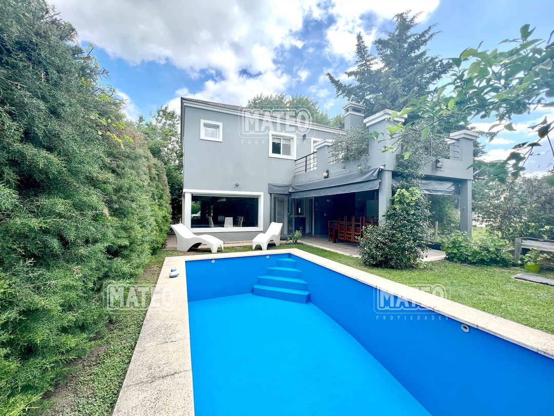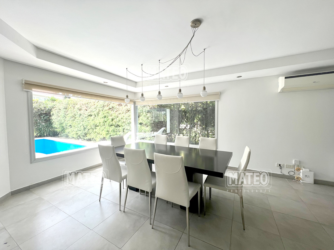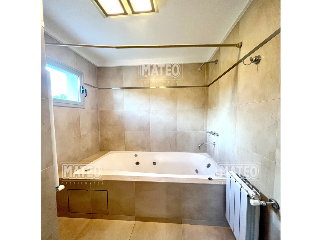 En planta baja cuenta con un Amplio Living comedor con grandes ventanales, cocina semi integrada con buen espacio de mesada y de guardado. Dormitorio en planta baja y baño completo contiguo. Galería semi cubierta con parrilla, baño para abastecer el exterior y lavadero. En planta Alta cuenta con 2 Dormitorios en suite (el principal es una Master suite con espacio de escritorio, vestidor y baño tricompartimentado) En el exterior cuenta con una hermosa piscina. Calefacción por radiadores. Aberturas doble vidrio. - Mateo Propiedades. Mat. 203 Dpto. M-Gr.