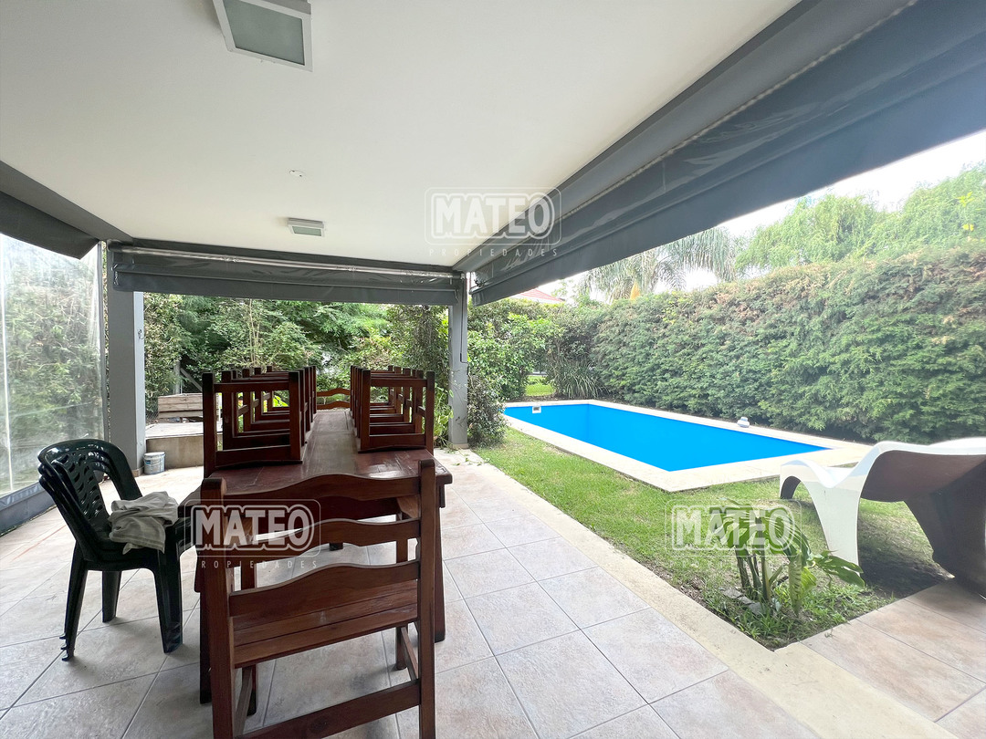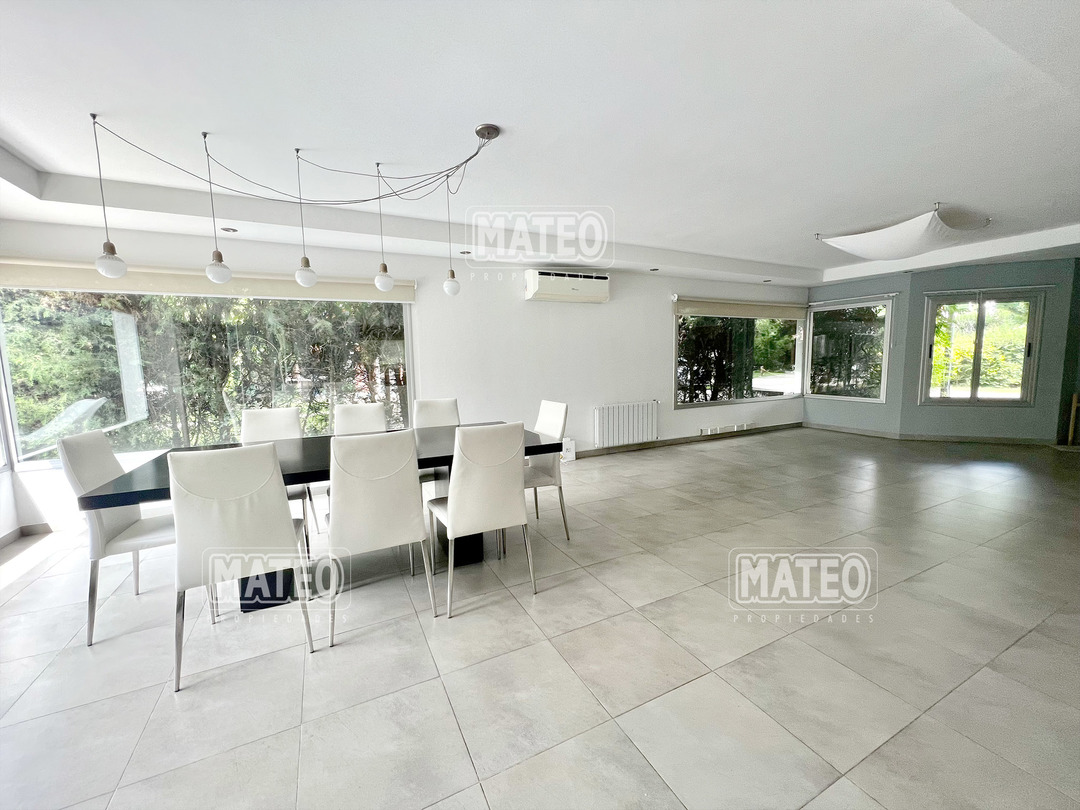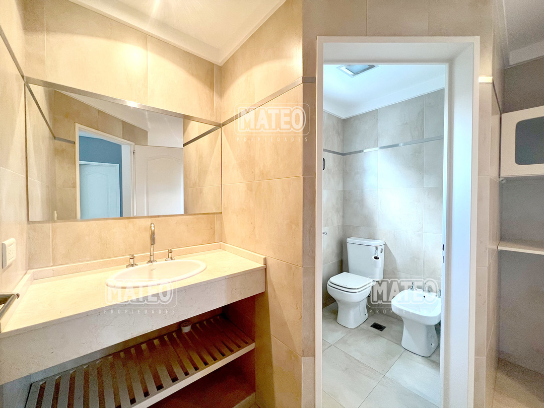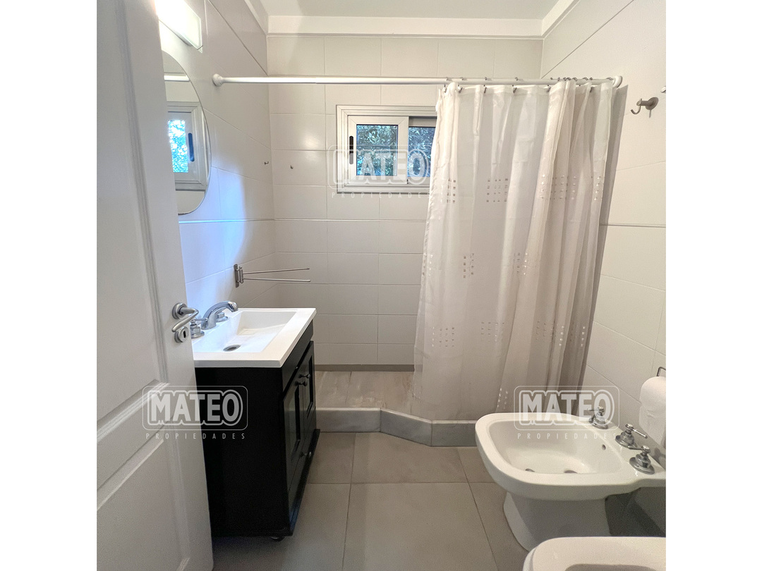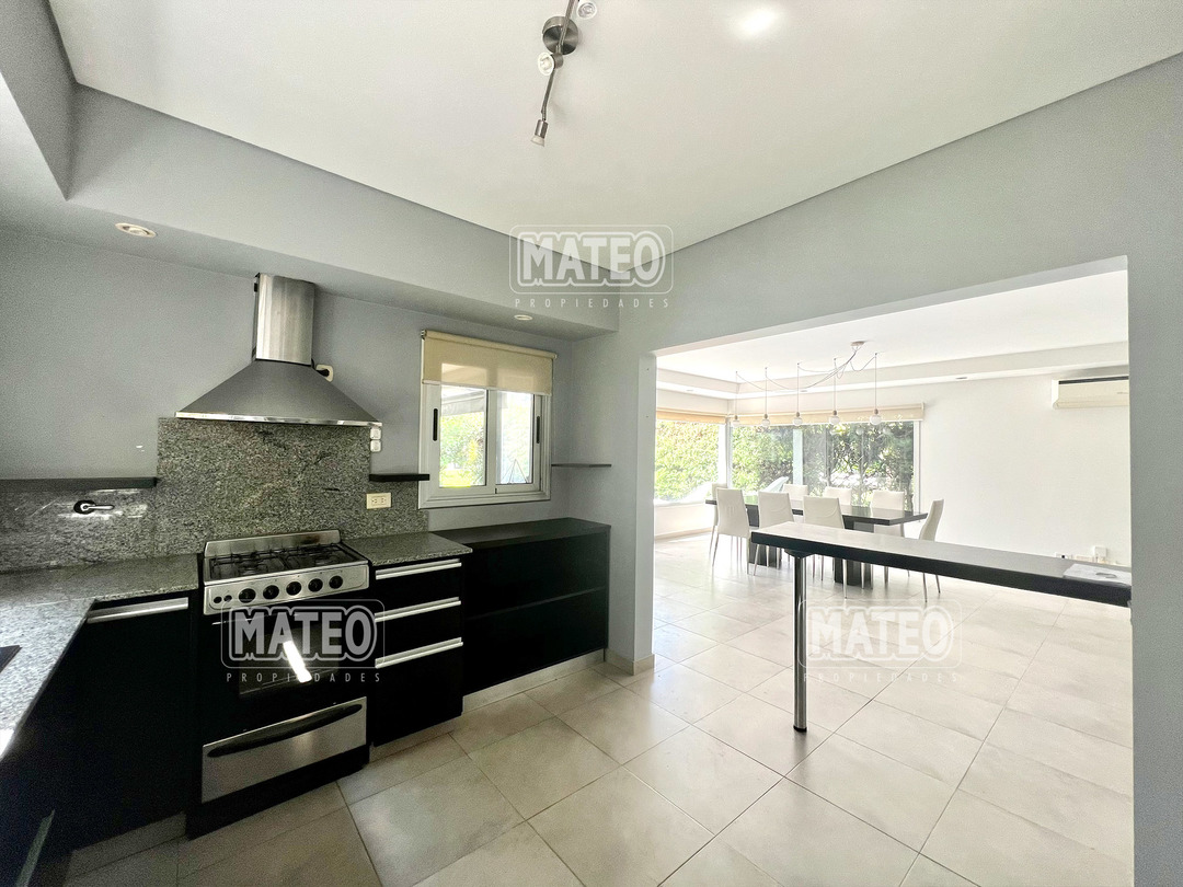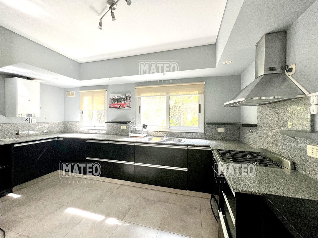 En planta baja cuenta con un Amplio Living comedor con grandes ventanales, cocina semi integrada con buen espacio de mesada y de guardado. Dormitorio en planta baja y baño completo contiguo. Galería semi cubierta con parrilla, baño para abastecer el exterior y lavadero. En planta Alta cuenta con 2 Dormitorios en suite (el principal es una Master suite con espacio de escritorio, vestidor y baño tricompartimentado) En el exterior cuenta con una hermosa piscina. Calefacción por radiadores. Aberturas doble vidrio. - Mateo Propiedades. Mat. 203 Dpto. M-Gr.
