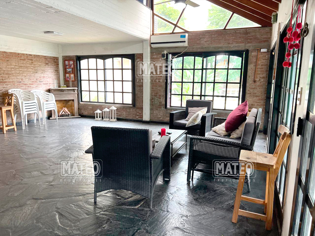 Próximo a entidades Educativas de distintos niveles, a la Universidad Nacional de Moreno, cercano a centros sanitarios y centro comercial con todos los rubros. Rápida salida al Acceso Oeste. Lote de 10x45 aproximadamente con Casa en 2 plantas en impecables condiciones. Planta Baja: amplio Living Comedor con desniveles. Baño completo. Cocina con Comedor diario integrado, muy buen amoblamiento de cocina. Primer Piso: 2 Baños completos. Dormitorio principal con vestidor; segundo Dormitorio con placard y tercer Dormitorio con placard. Todos los ambientes muy ventilados y luminosos. Todas las aberturas de excelente calidad. Cochera pasante, atrás espacio verde disponible. Al fondo gran Quincho vidriado totalmente equipado (10x7 aproximadamente), con Parrilla, 2 Baños y Lavadero; en el entrepiso amplio salón que balconea a la planta baja del quincho. - Mateo Propiedades. Mat. 36 Dpto. M-Gr.