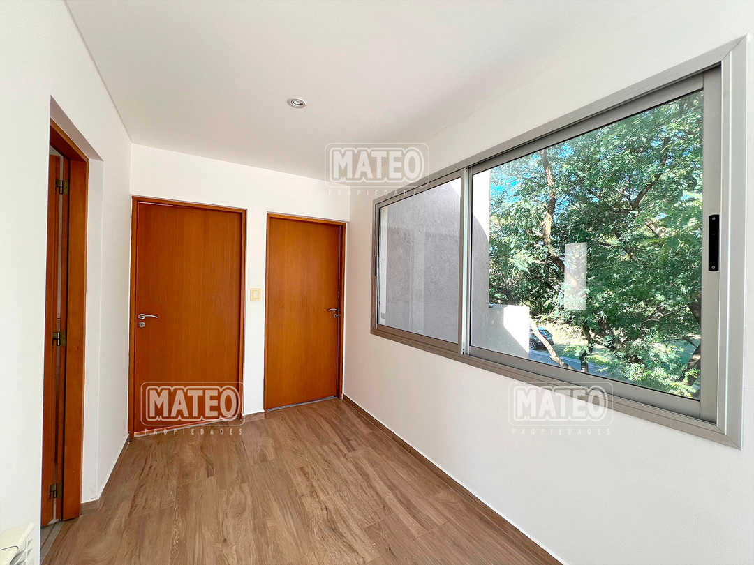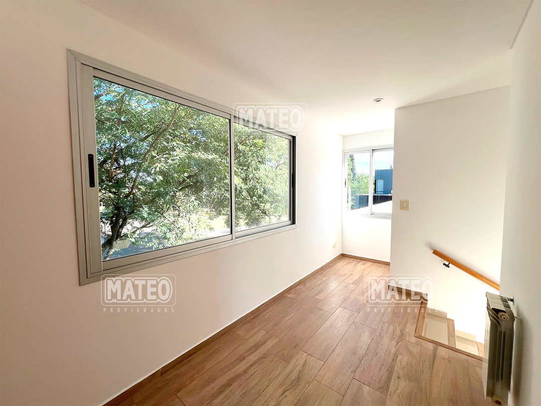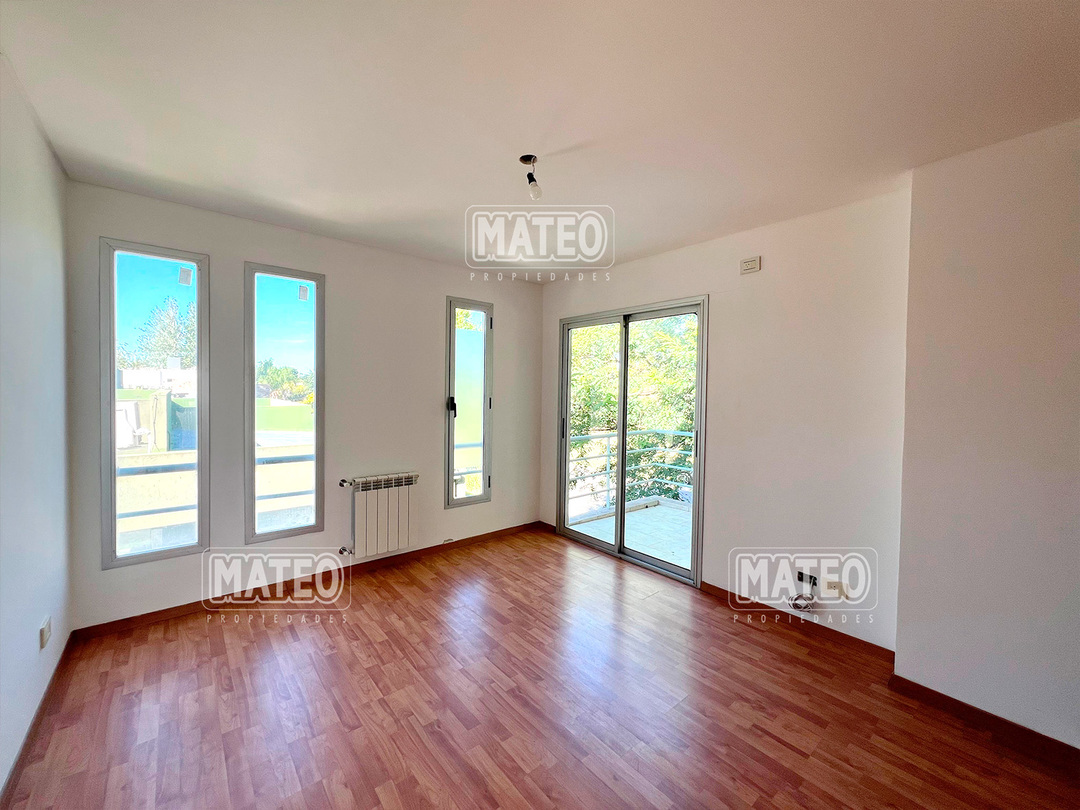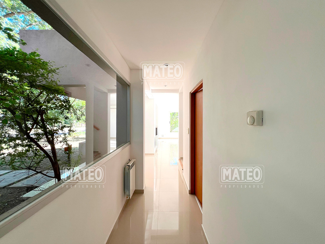 PLANTA BAJA: Hall de entrada. Living comedor. Cocina integrada con desayunador. Toilette de recepción. Dormitorio principal en suite, con vestidor e hidromasajes. Amplia galería con parrilla. Garaje cubierto. PLANTA ALTA: Estar o escritorio abierto. Dos amplios dormitorios con placar. Baño completo. CARACTERISTICAS: Calefacción por radiadores. Pisos de porcelanato. Revestimiento exterior de tarquini. Aberturas de aluminio anodizado. - Mateo Propiedades. Mat. 203 Dpto. M-Gr.