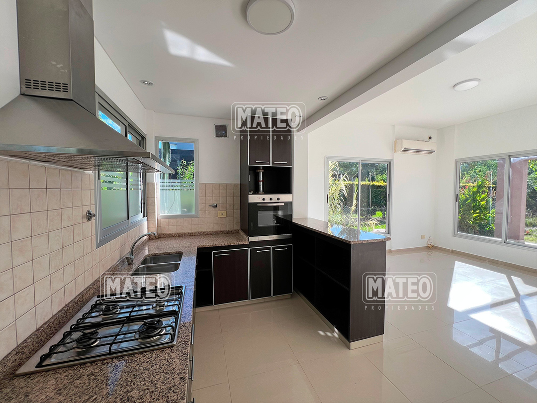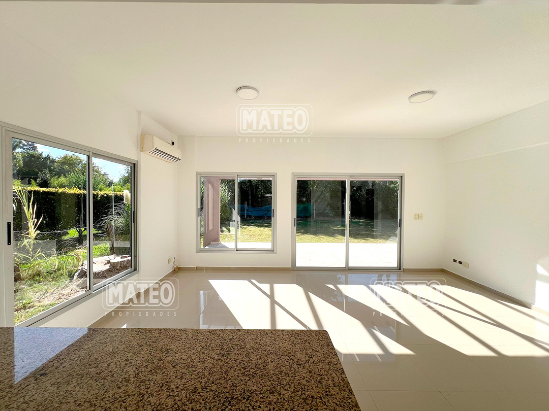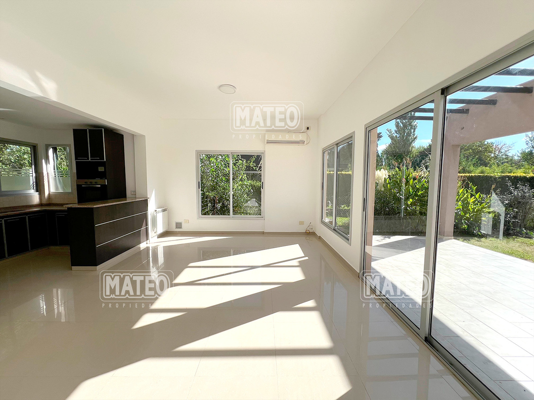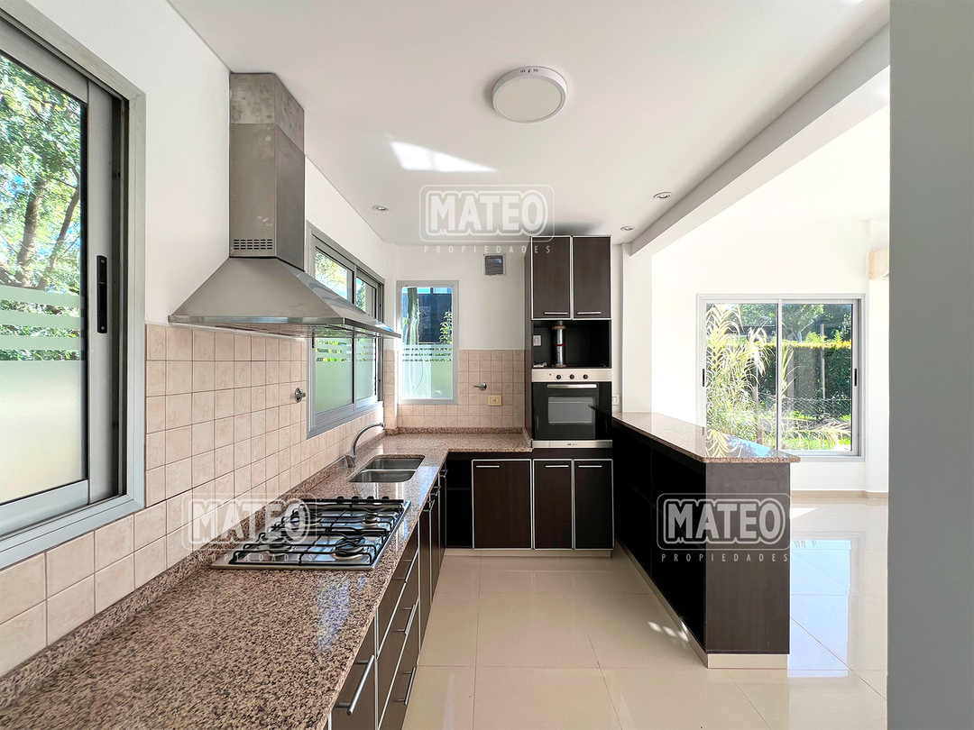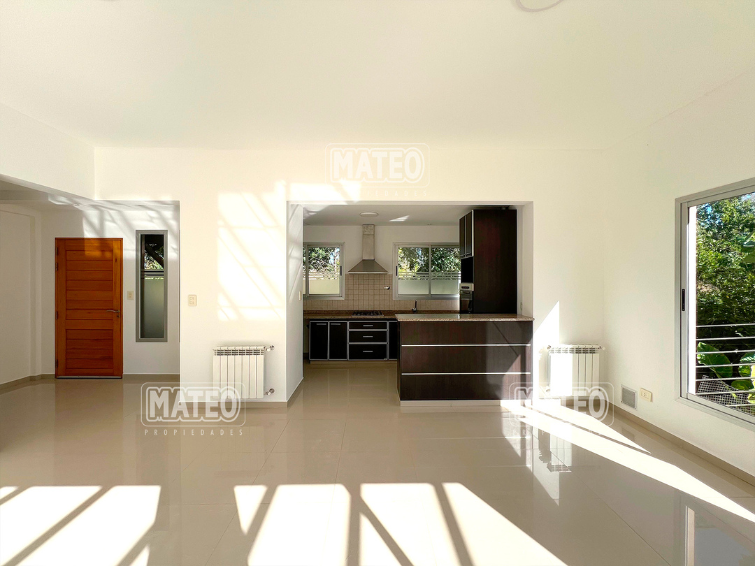 PLANTA BAJA: Hall de entrada. Living comedor. Cocina integrada con desayunador. Toilette de recepción. Dormitorio principal en suite, con vestidor e hidromasajes. Amplia galería con parrilla. Garaje cubierto. PLANTA ALTA: Estar o escritorio abierto. Dos amplios dormitorios con placar. Baño completo. CARACTERISTICAS: Calefacción por radiadores. Pisos de porcelanato. Revestimiento exterior de tarquini. Aberturas de aluminio anodizado. - Mateo Propiedades. Mat. 203 Dpto. M-Gr.